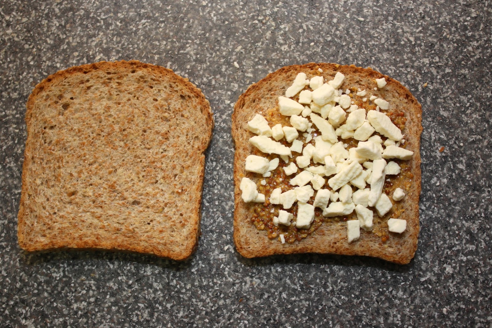 6) Spread the mustard over one (or both) slices of bread.