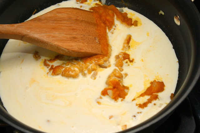 3) Add the pumpkin and nutmeg and cook, stirring, 1 minute.
